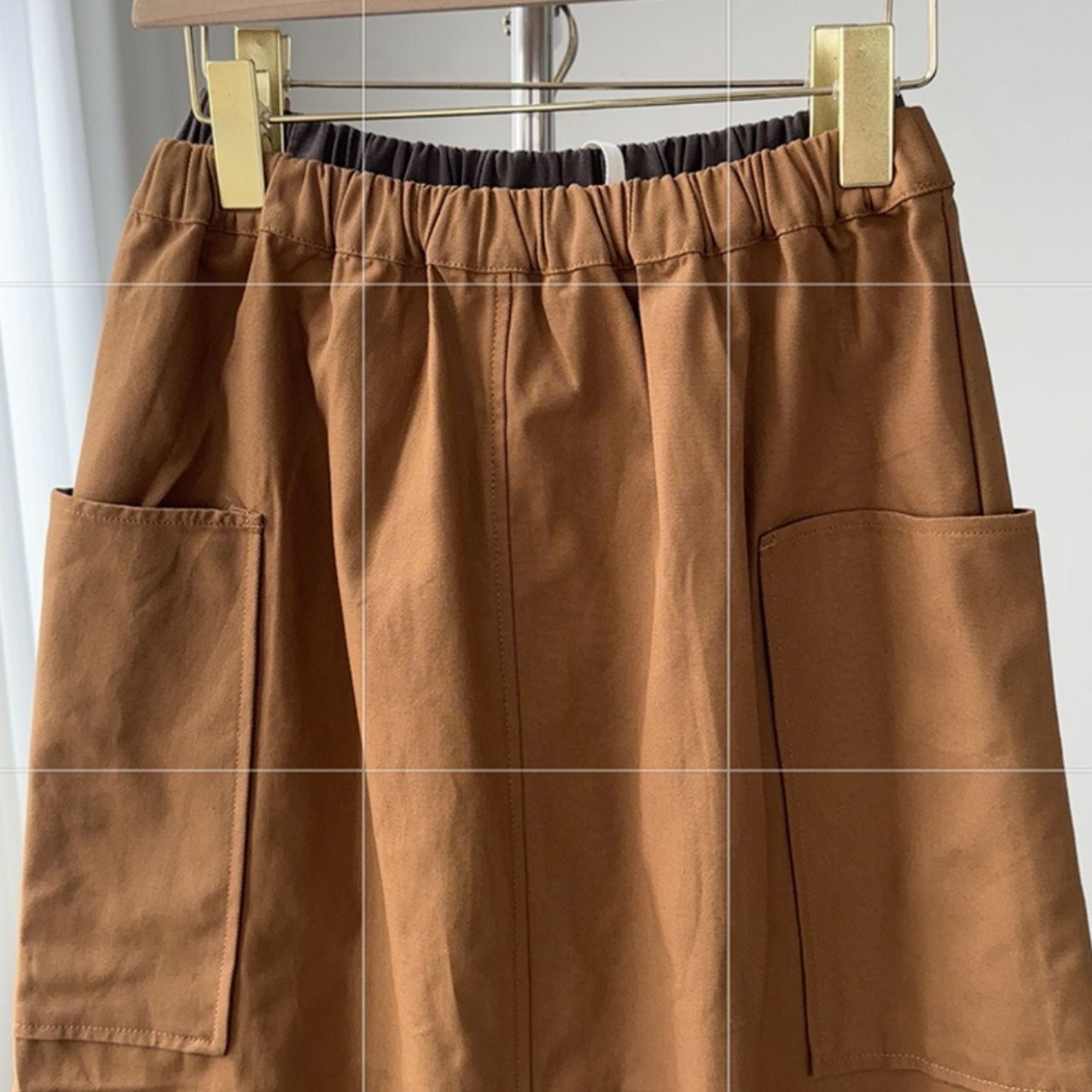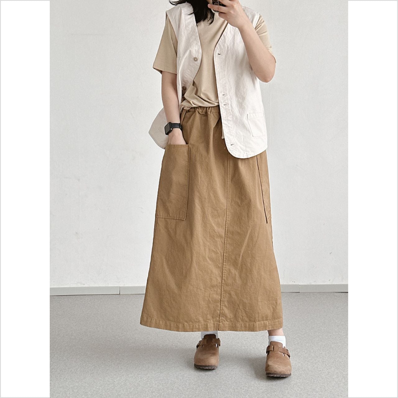 パッチポケットウエストゴム Aラインマキシスカート Ln00218