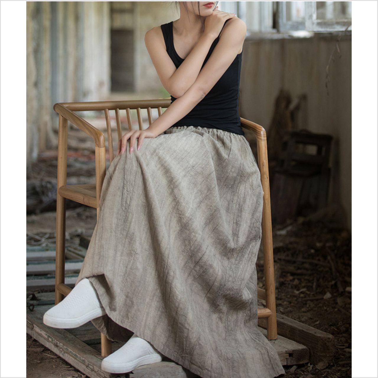 ナチュラル風合い ギャザーAライン ロングスカート Ln00261