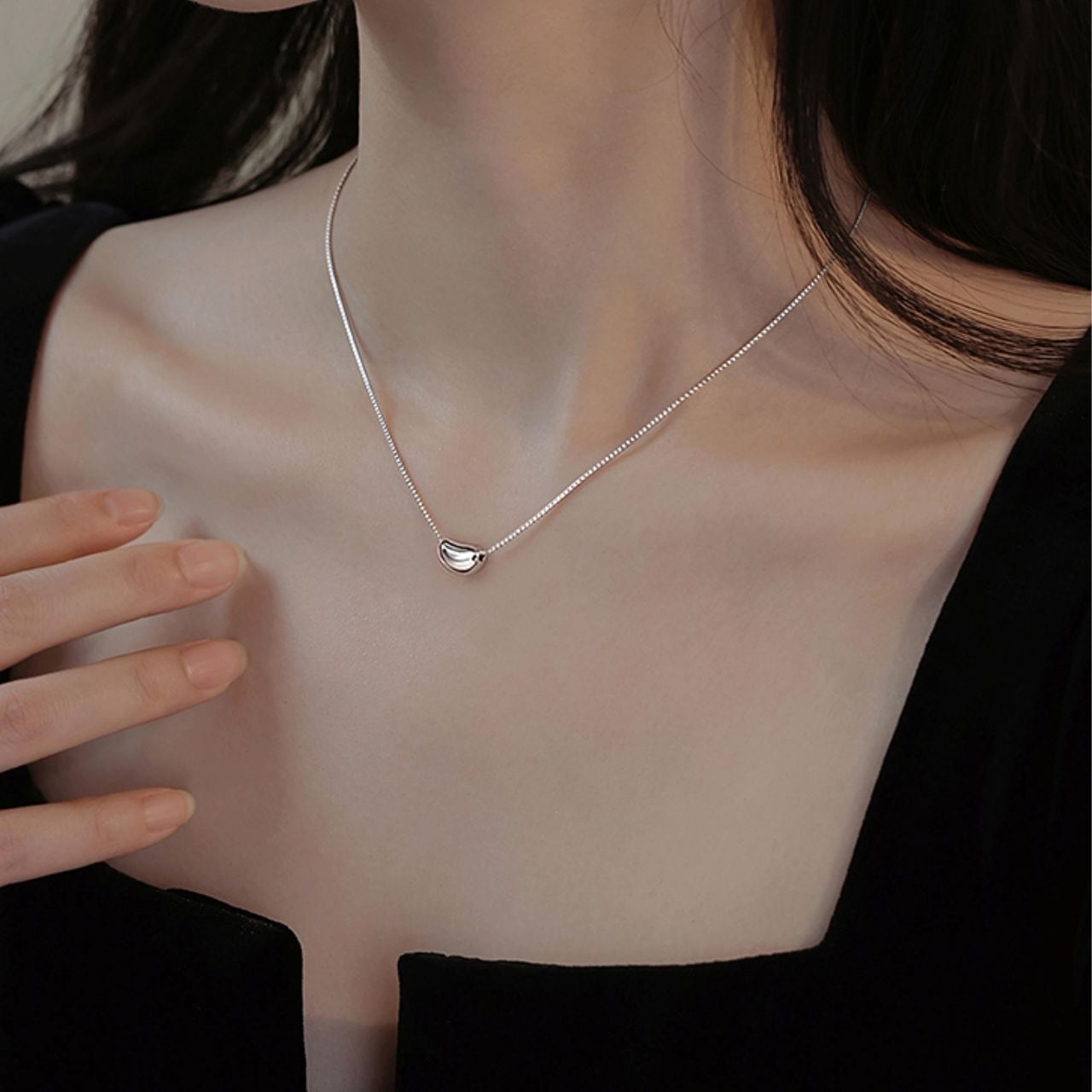 豆のようにころんとしたフォルムが可愛い、ミニマルデザインのトップネックレス。