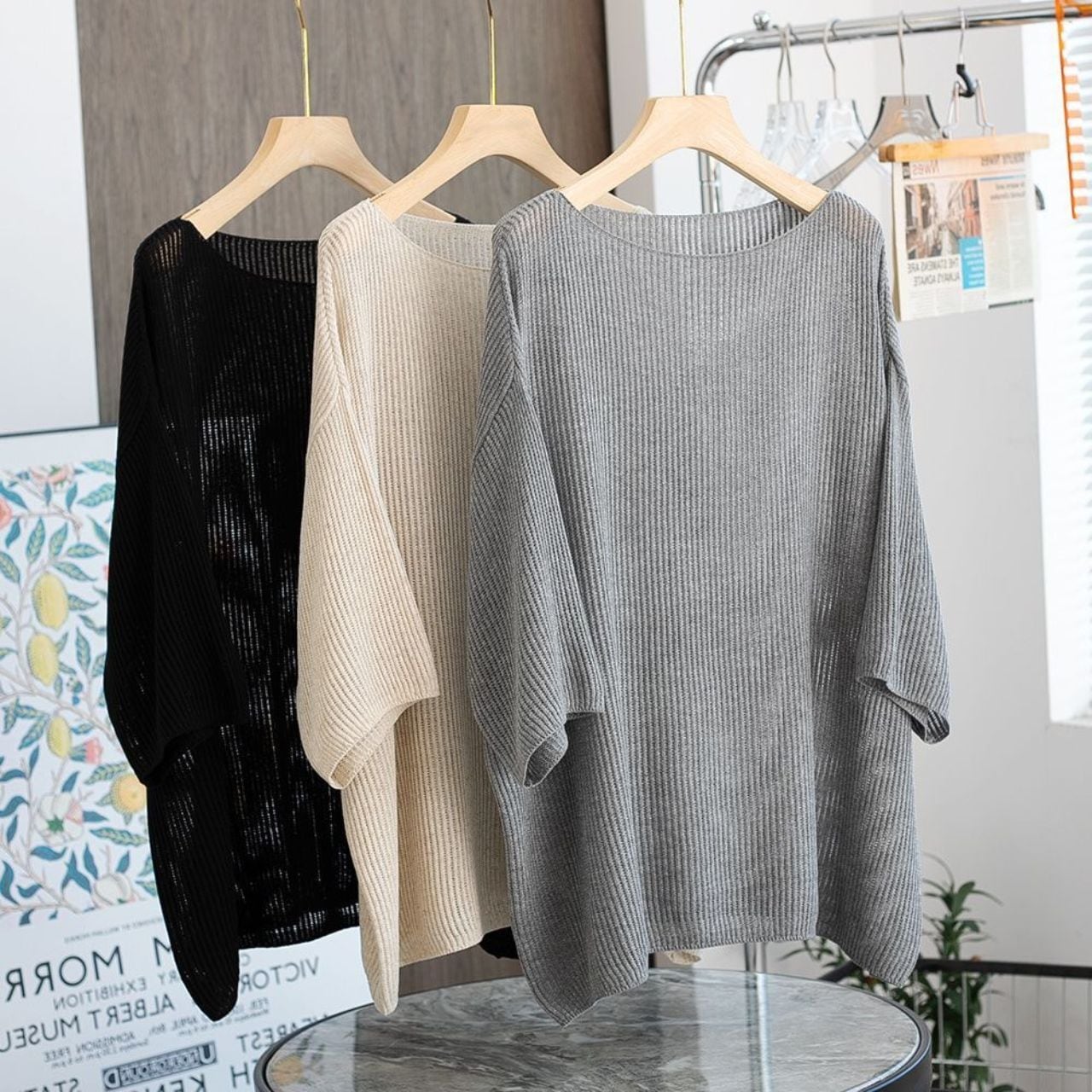 透け感のある軽やかな編地が魅力の、ゆったりシルエットのトップス。