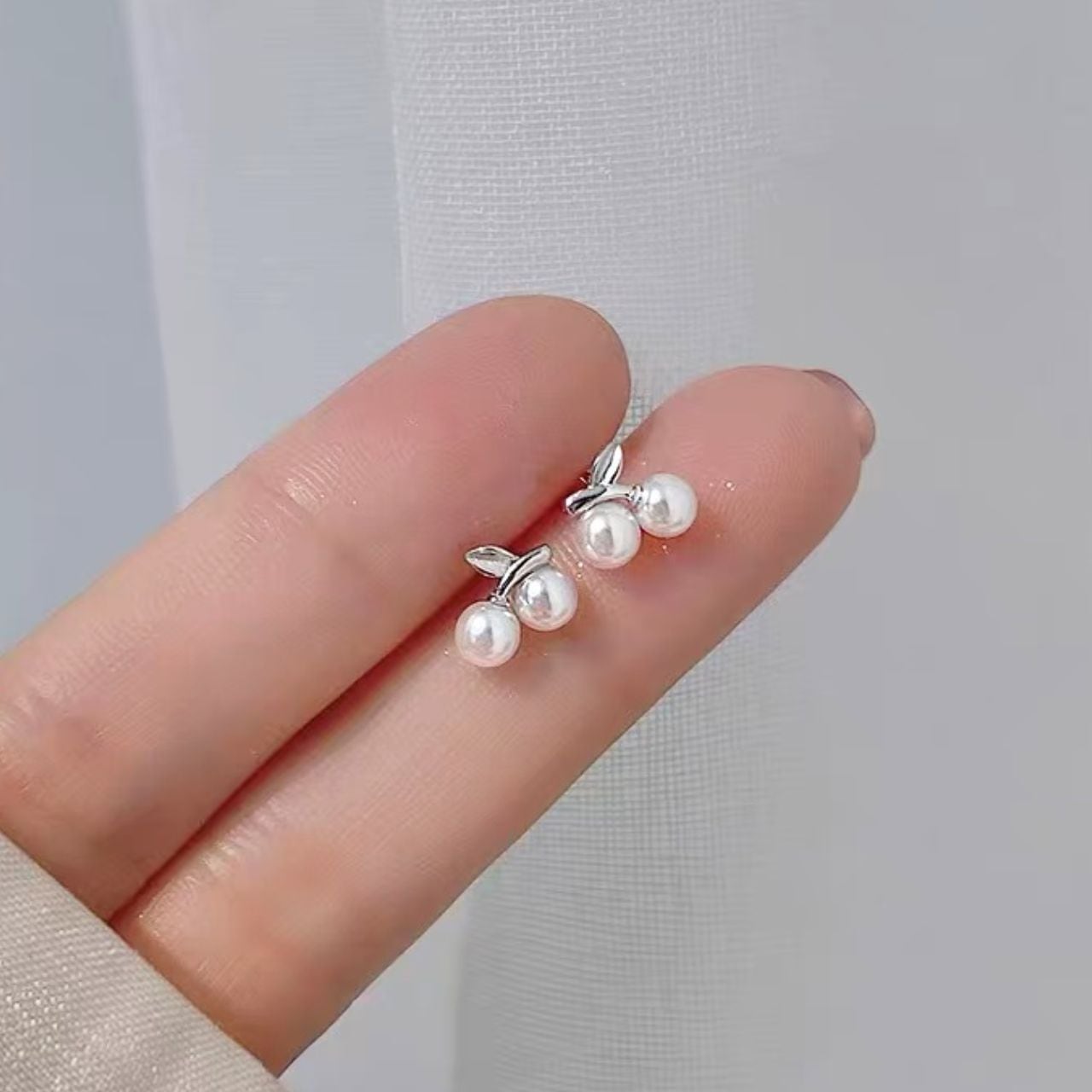 愛らしいさくらんぼモチーフが耳元を華やかに彩るパール調ピアス。