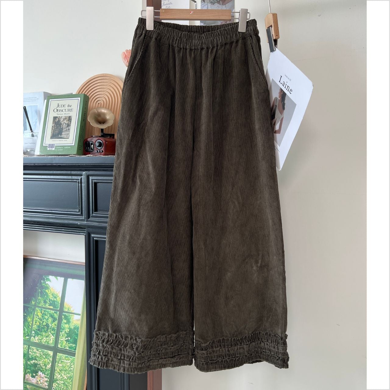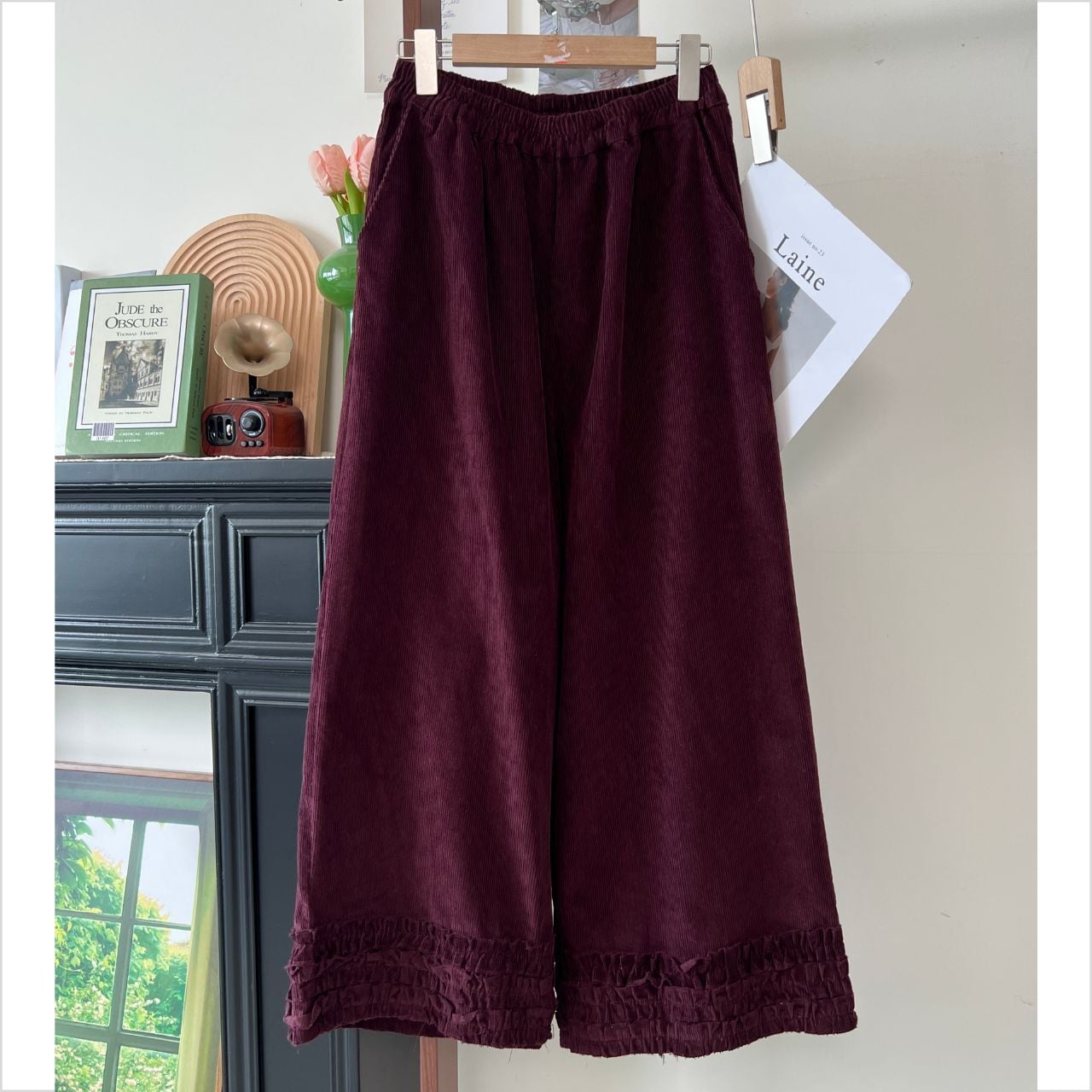 クラシカルなレースヘムが印象的なワイドパンツ。