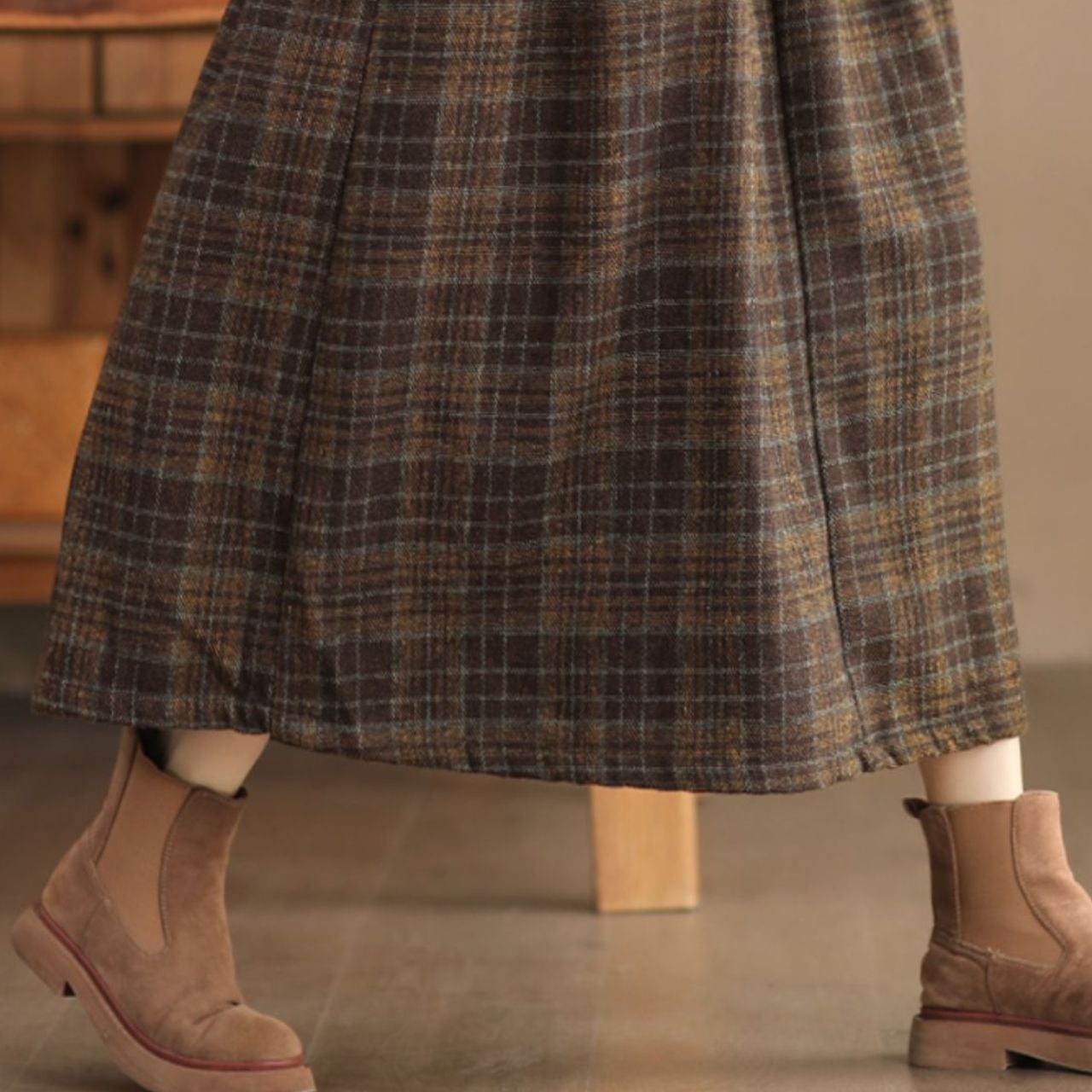 起毛感のあるチェック柄がクラシカルな印象のロングスカート。