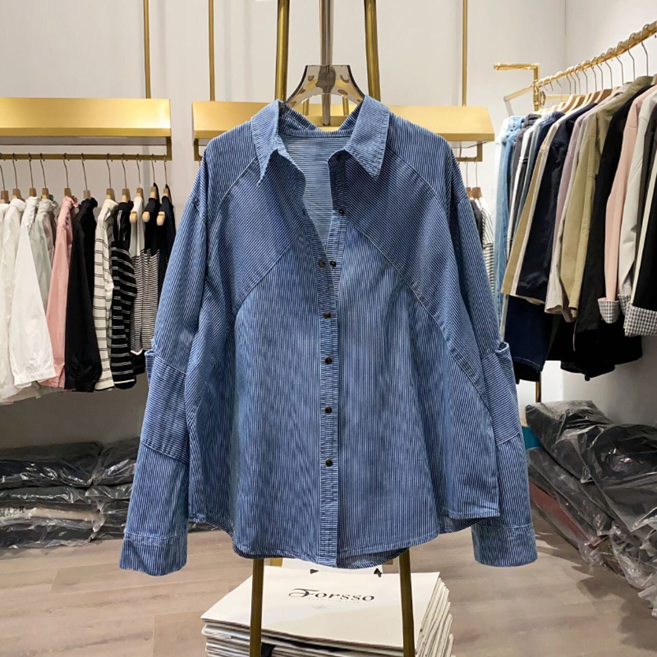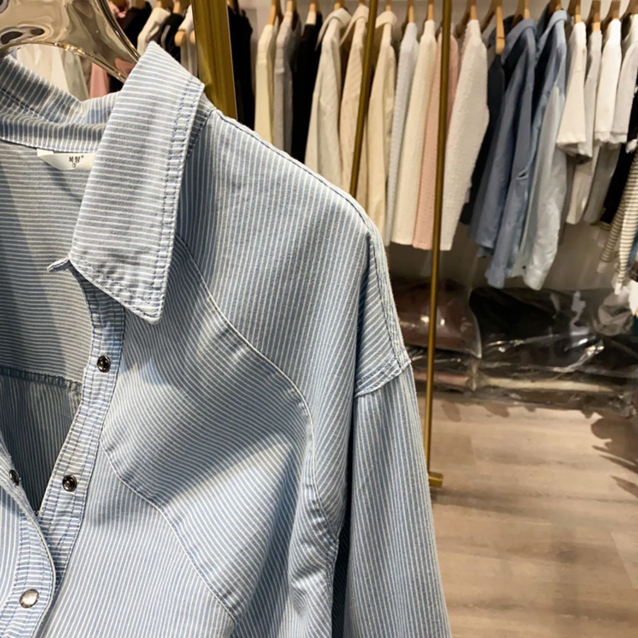 #トップス #デニムシャツ #ストライプ柄 #切替デザイン #前開き