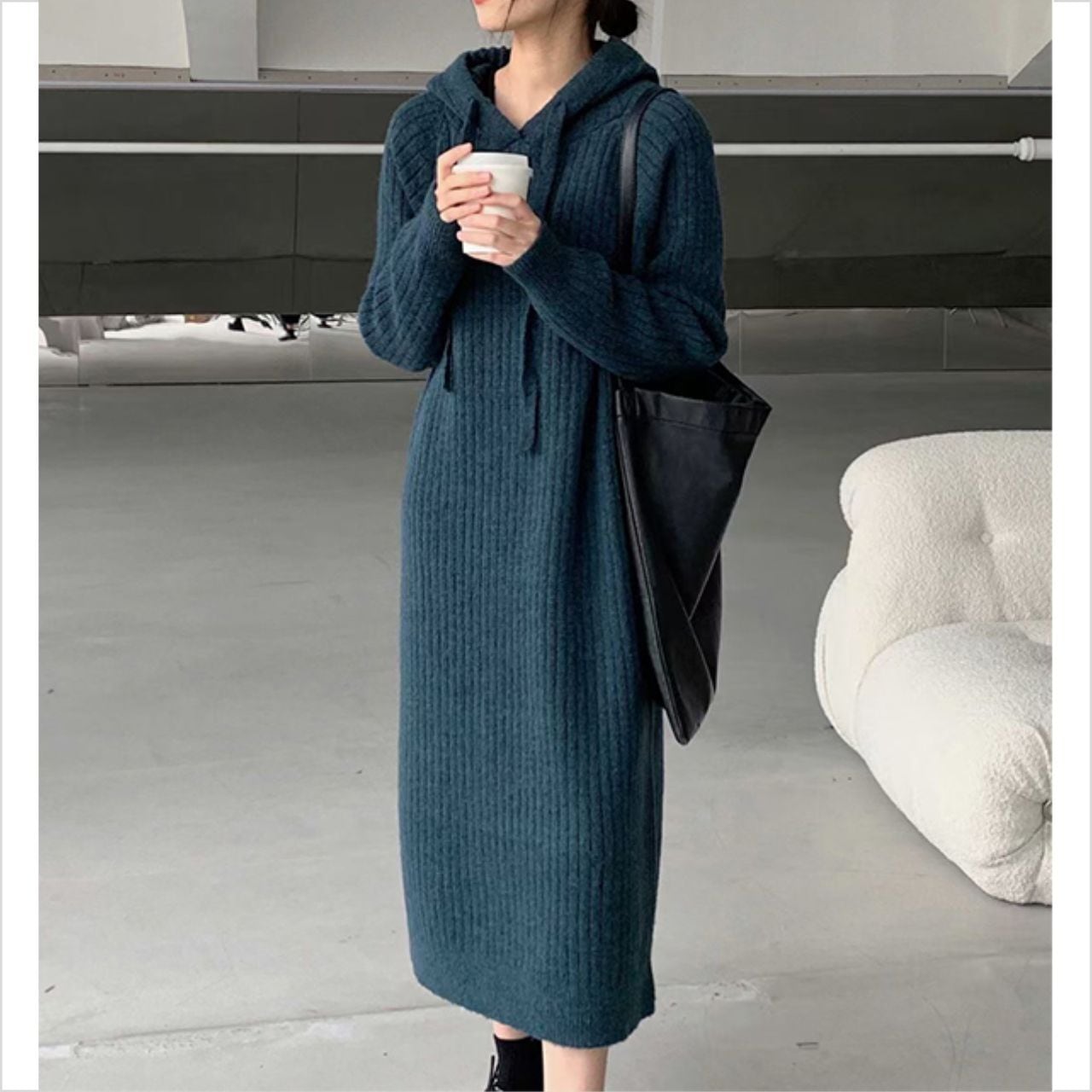 #ワンピース #ニット #フード付き #ロング丈 #ゆったりシルエット