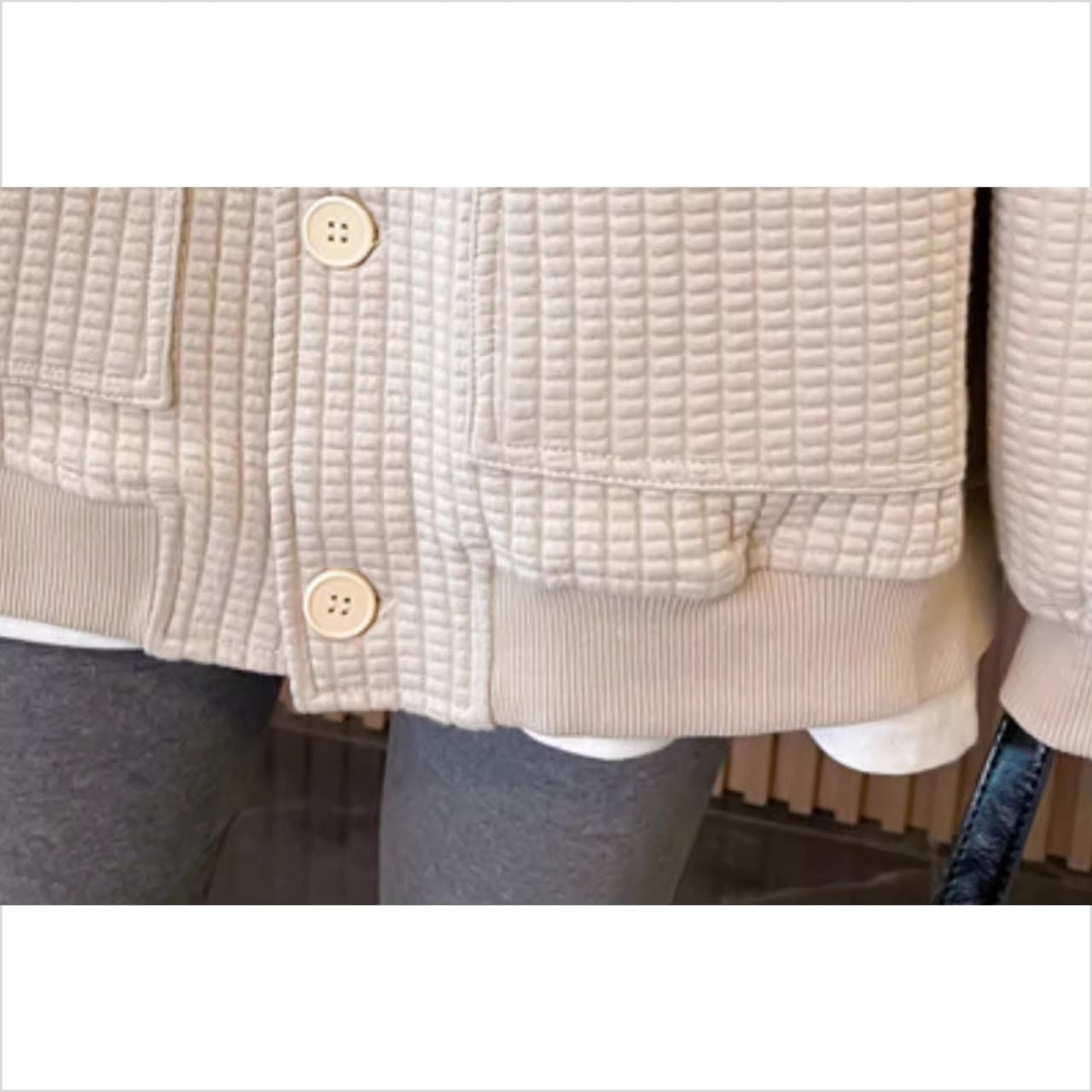 凸凹感のあるワッフル編みが柔らかく、ラフに羽織れるフード付きパーカー。