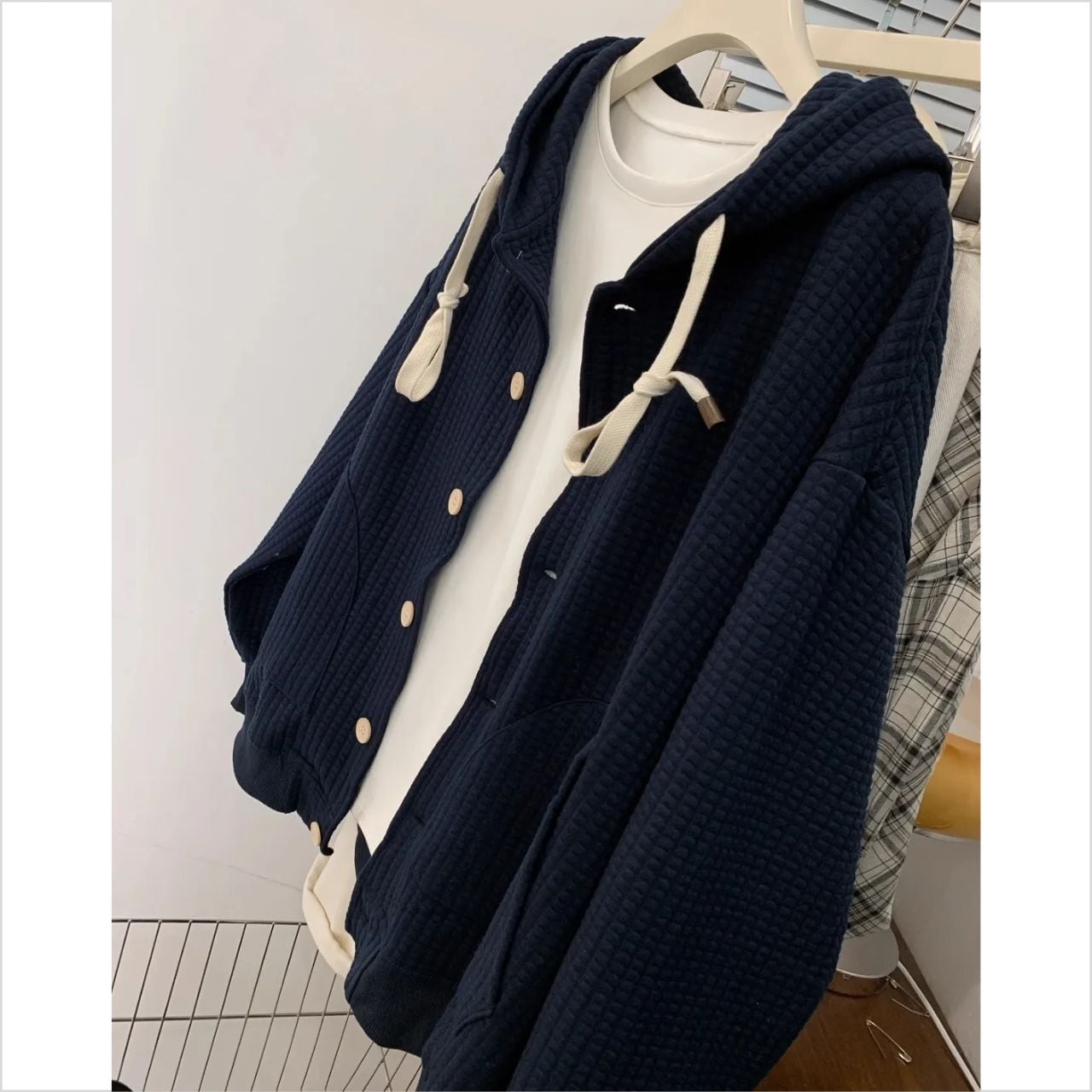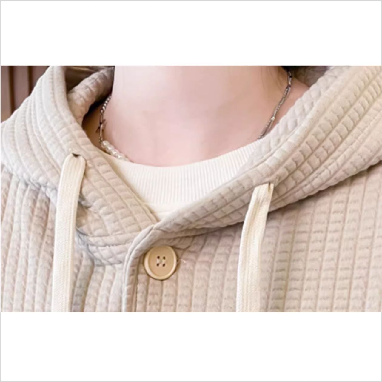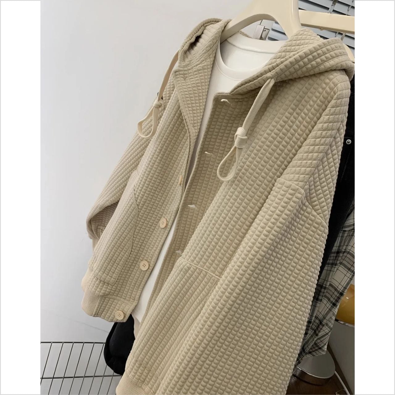 ワッフル編み フード付き ゆったりパーカー Ln00430