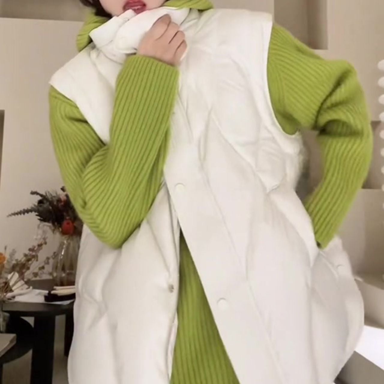 長めの袖リブや前立ての引き返し編みがさりげないアクセント。