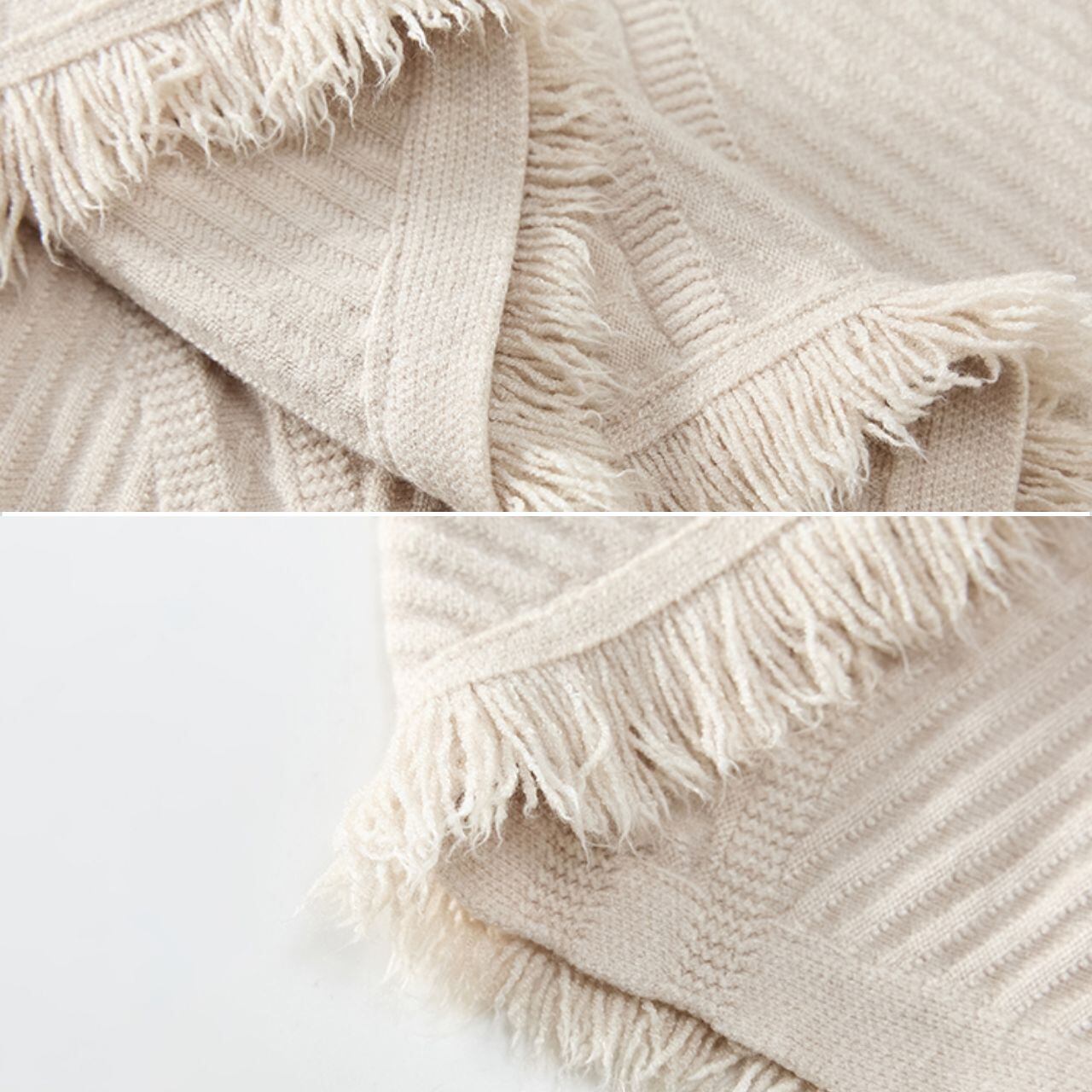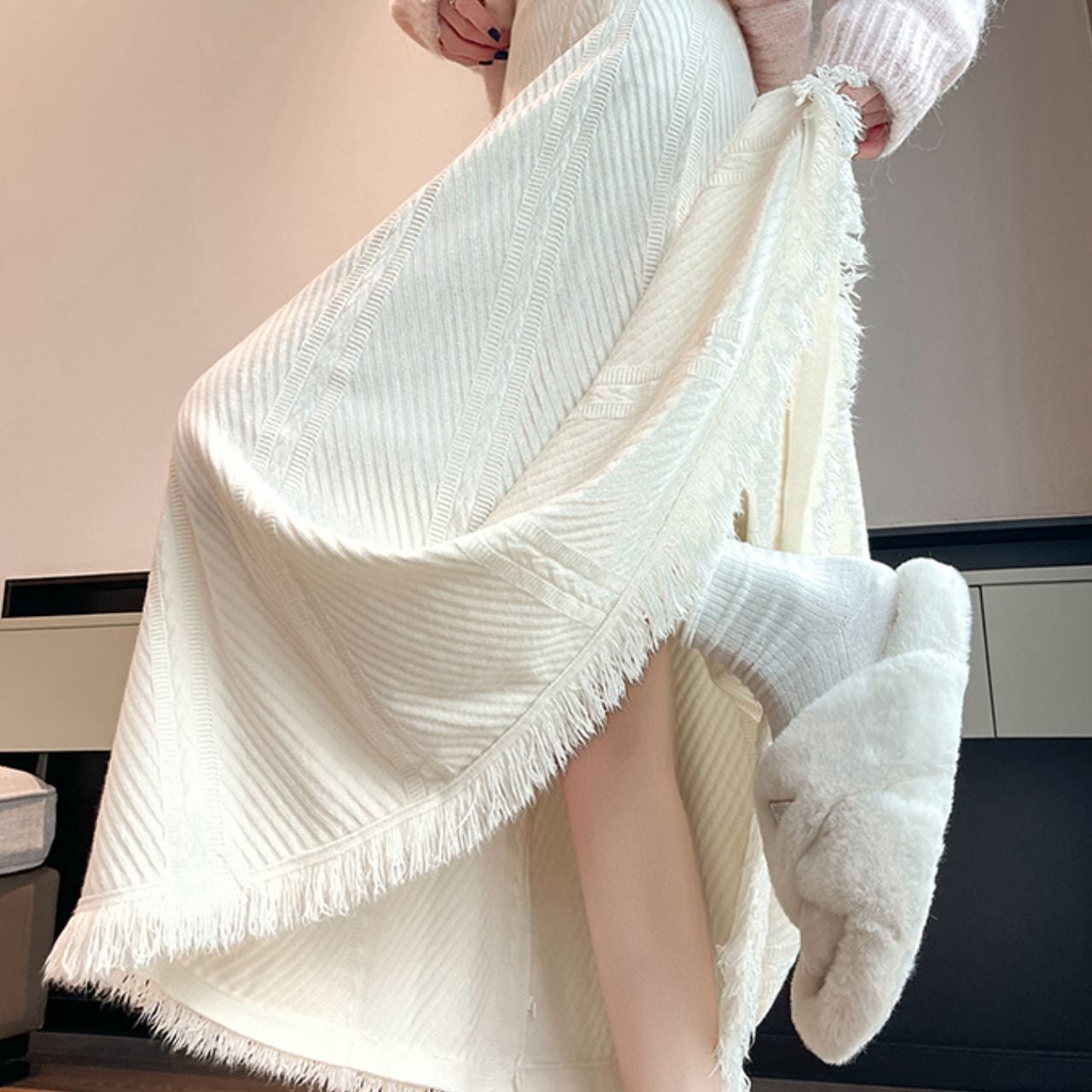 立体感のあるリブ編みと、裾のフリンジが印象的なニットスカート。