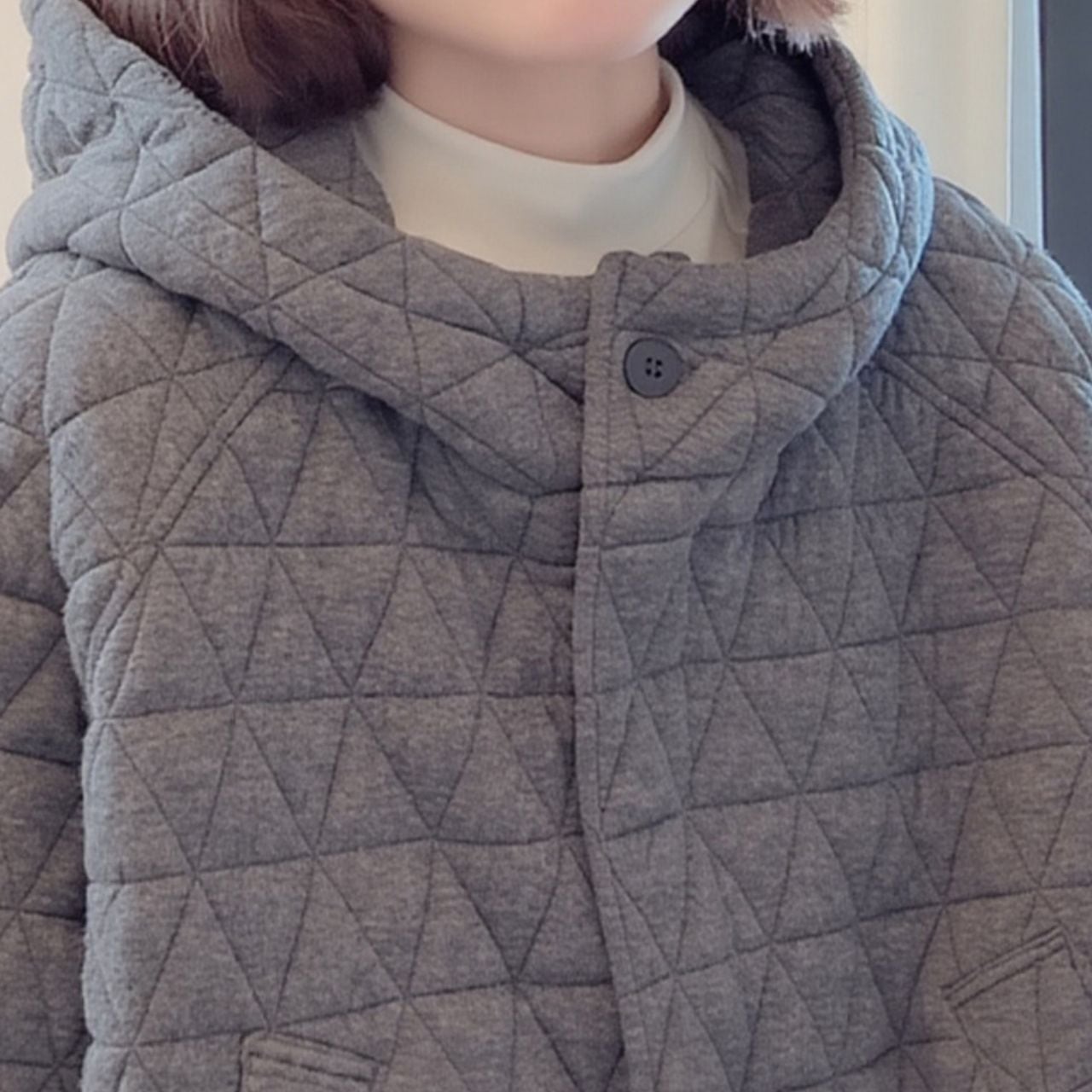 立体的なキルティングが目を惹く、冬にぴったりのあったかフード付きジャケット。
