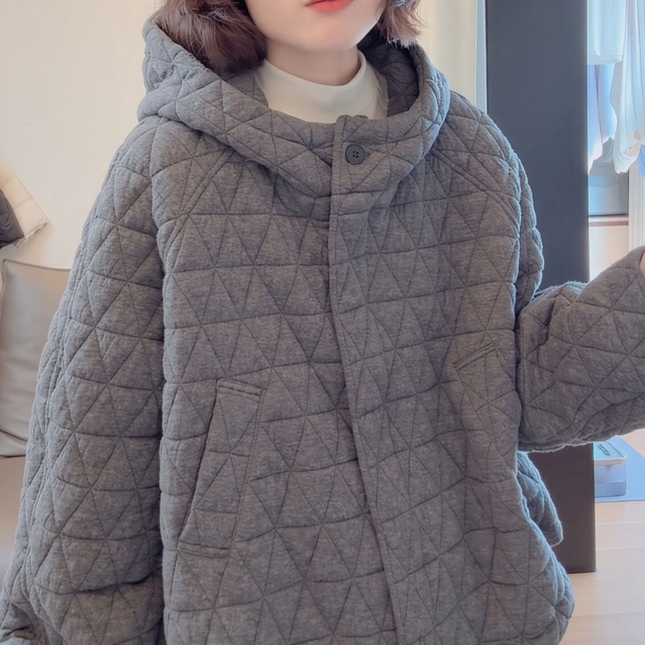 立体キルトデザイン ゆったりフードジャケット Ln00446