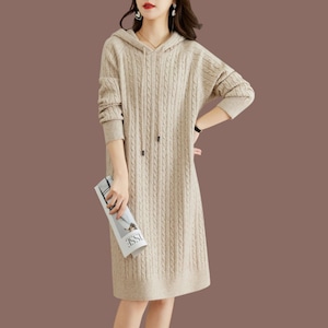 フード付き ケーブル編みニットワンピース Ln00459