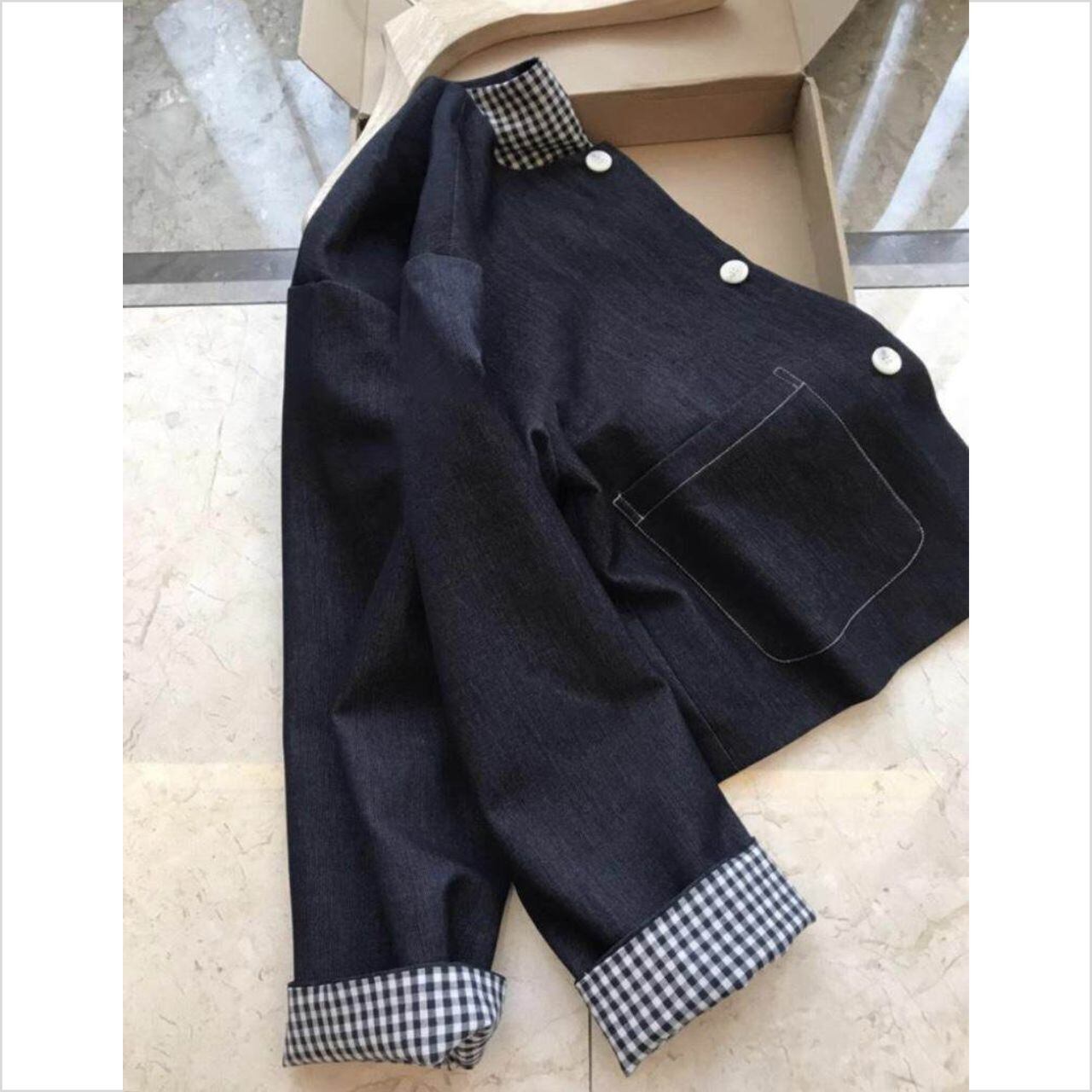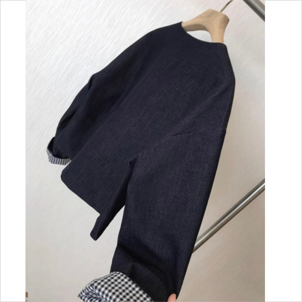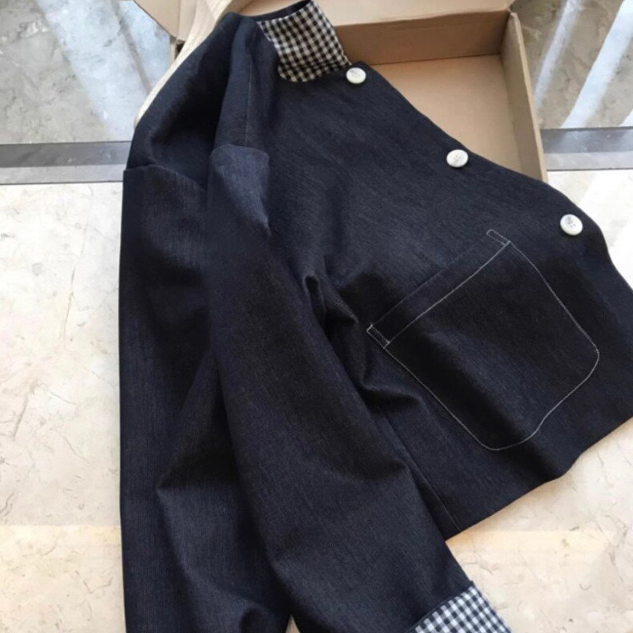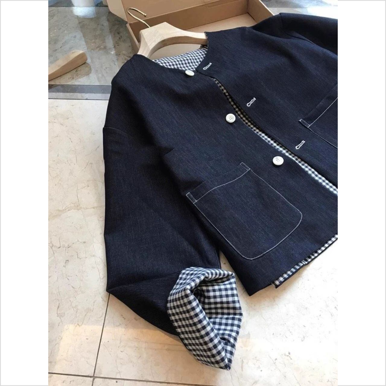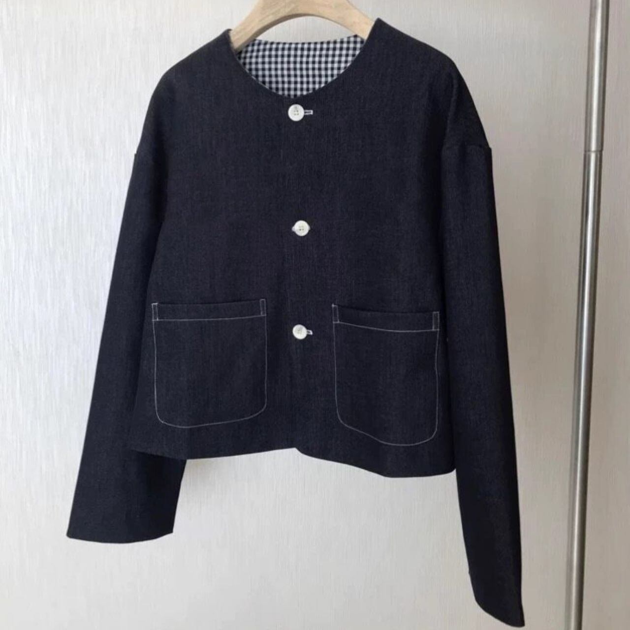#アウター #ライトアウター #デニムジャケット #ノーカラー #ショート丈