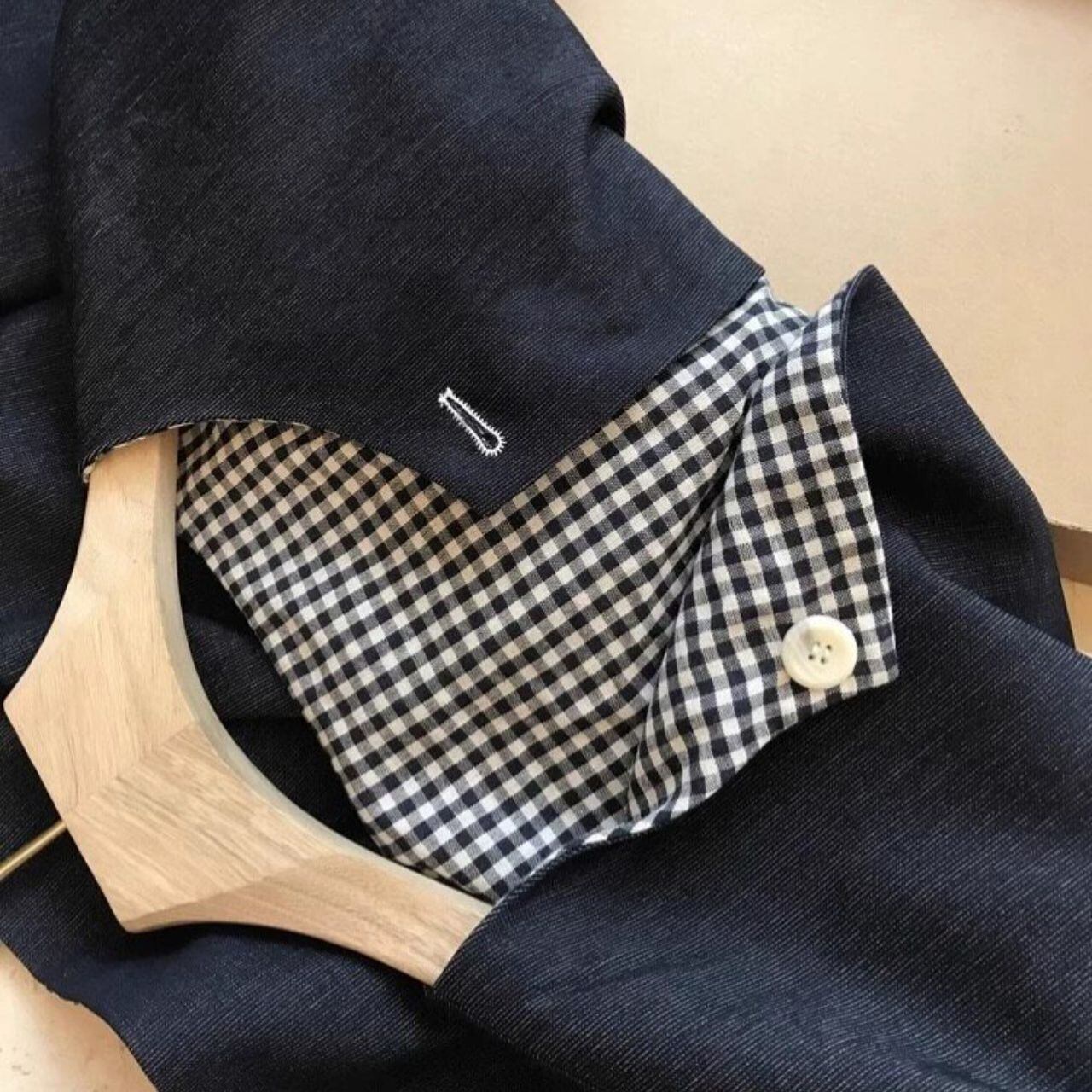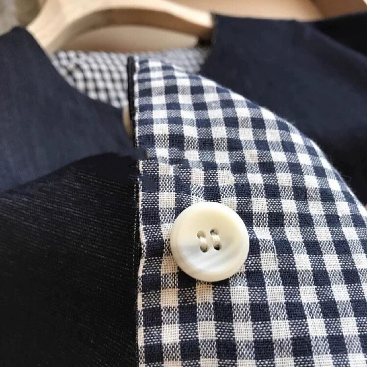 袖口のチェック柄切替でさりげない遊び心もプラス。