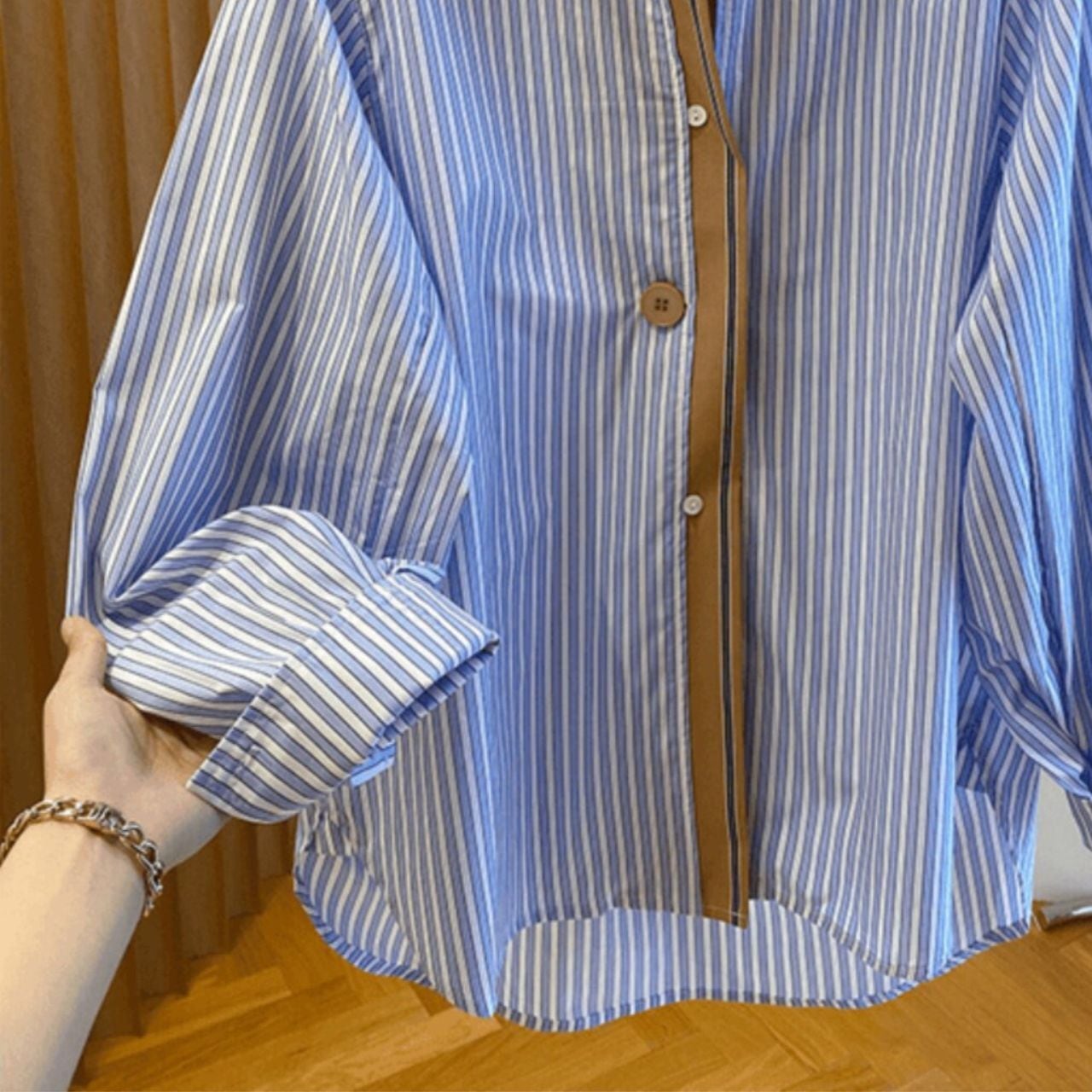 #トップス #シャツブラウス #ストライプ柄 #スタンドカラー #配色デザイン