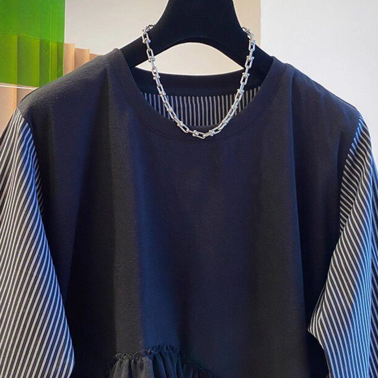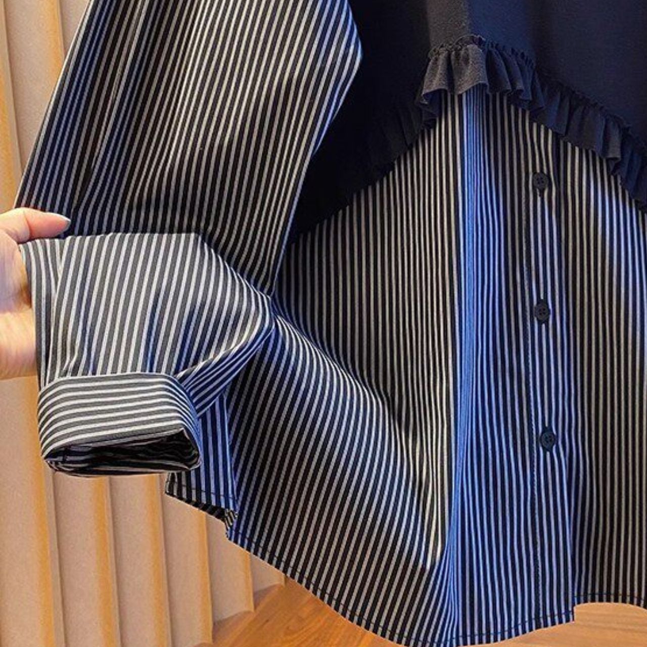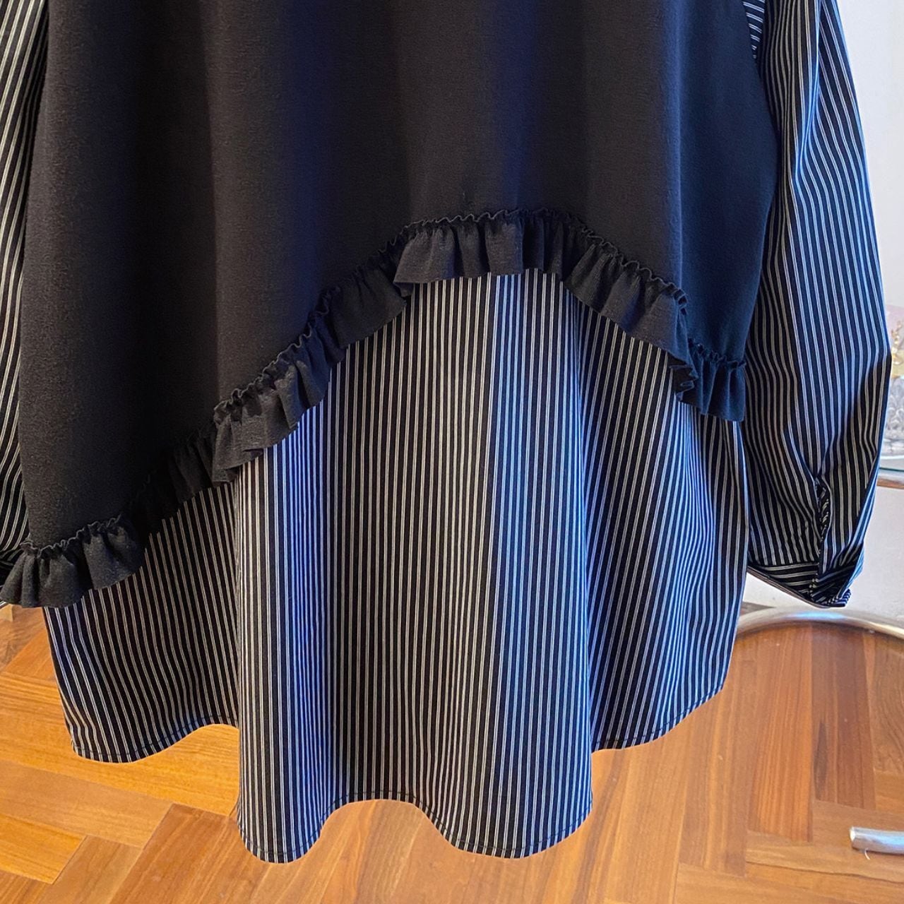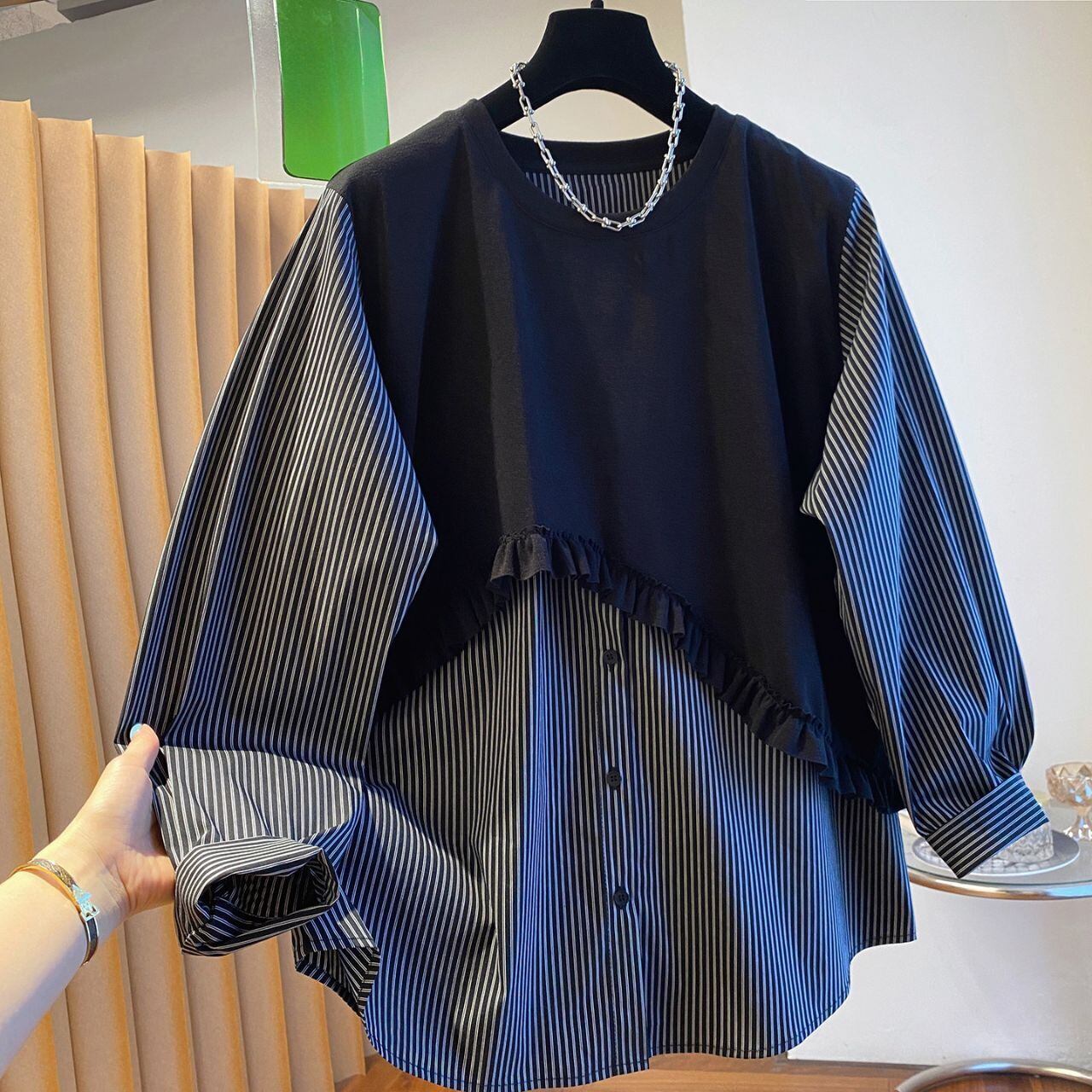 #トップス #シャツブラウス #レイヤード風 #ストライプ柄 #切替デザイン