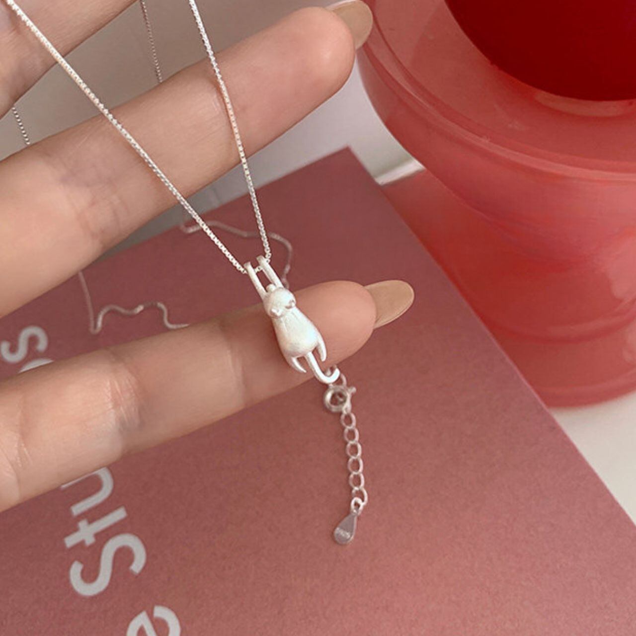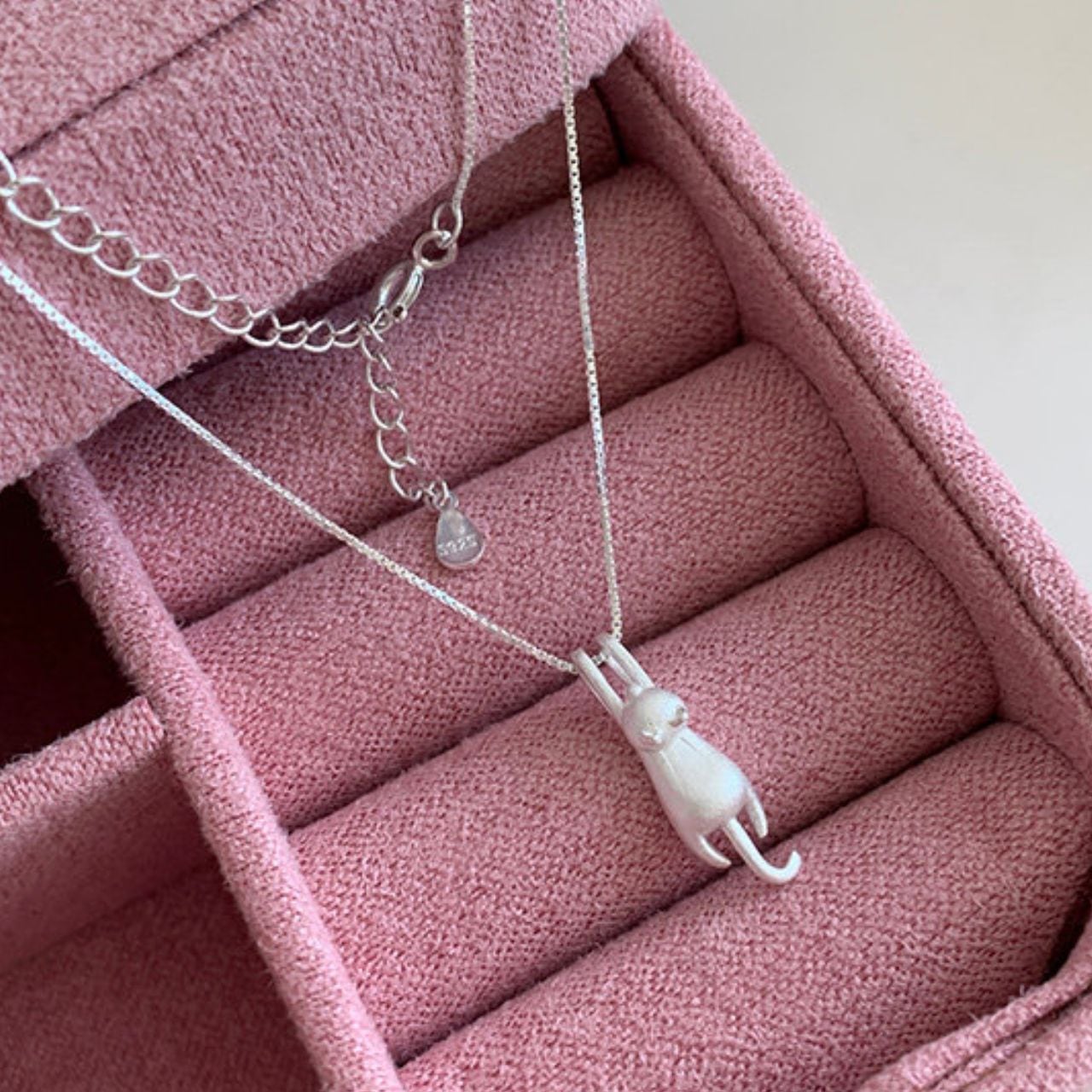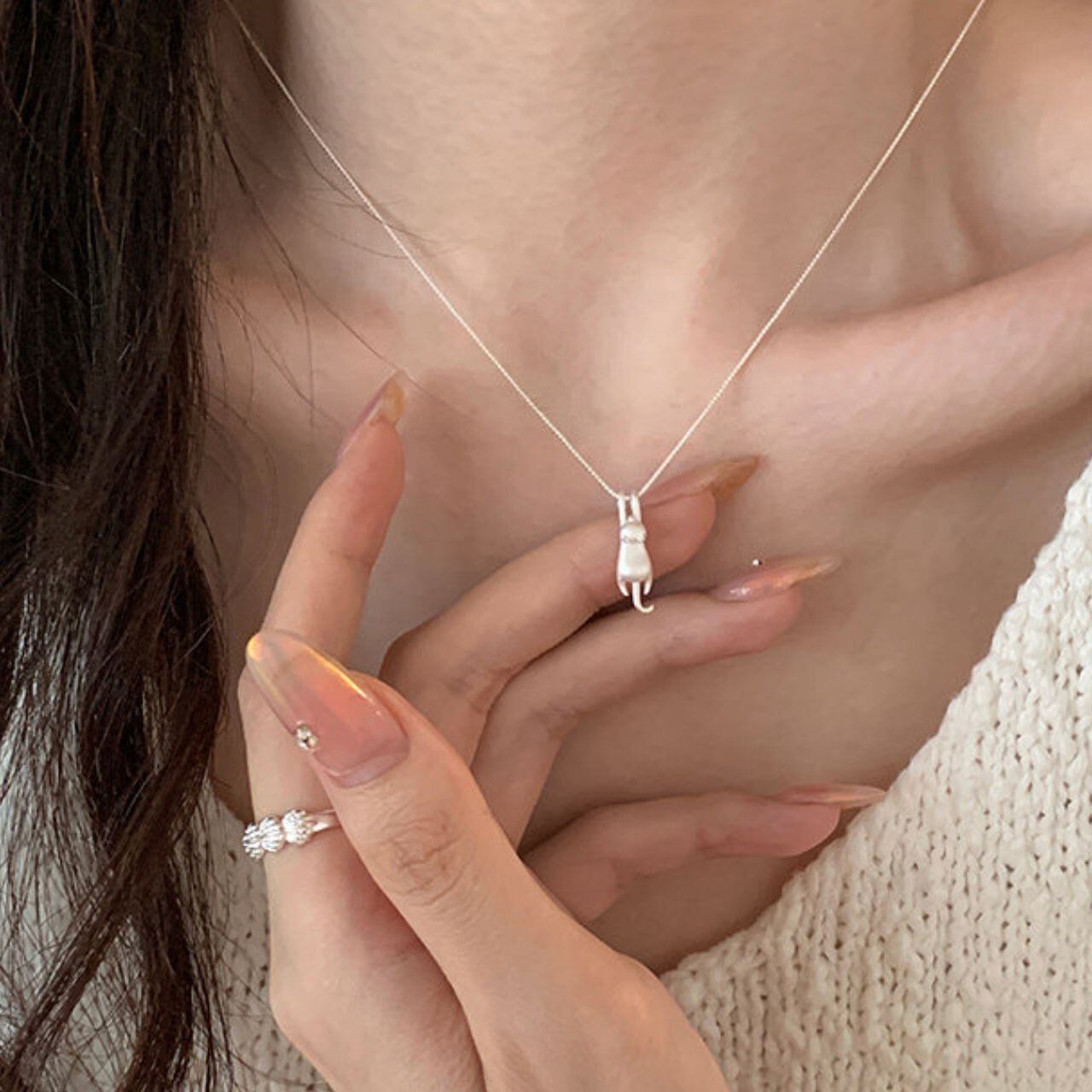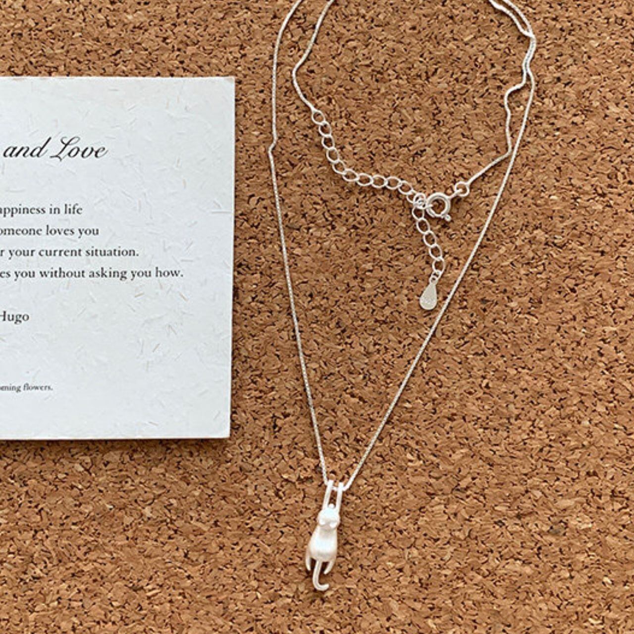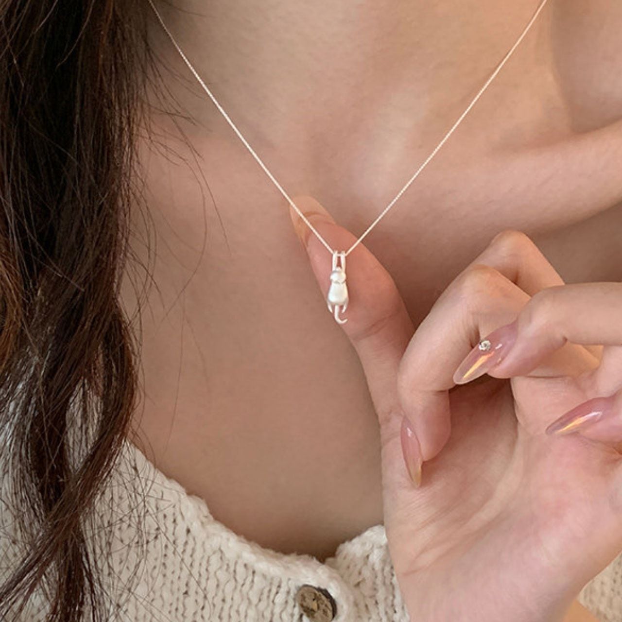 小さなねこモチーフが胸元でさりげなく揺れる、シルバーネックレス。