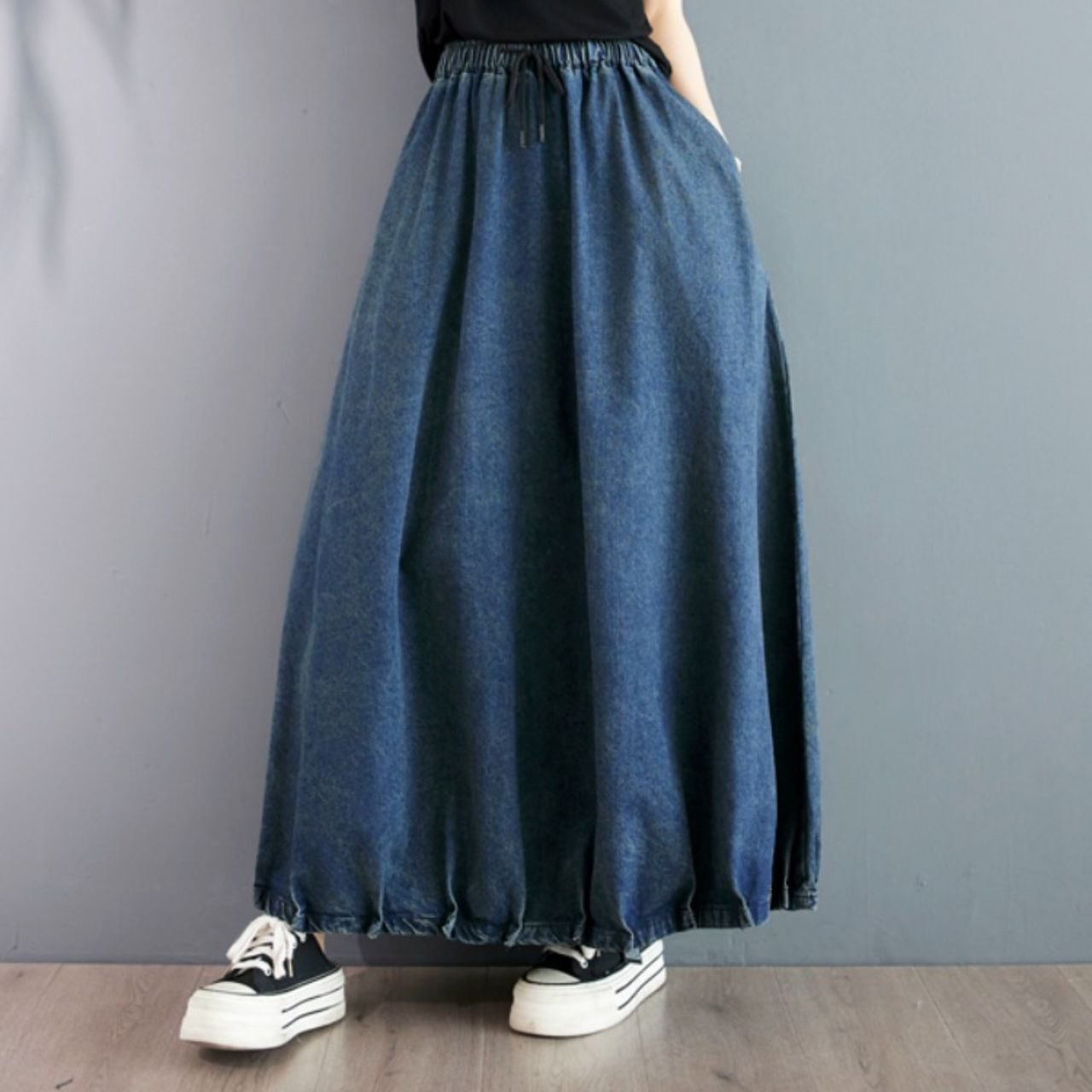 ゆったりバルーンシルエット デニムワイドスカート Ln00015